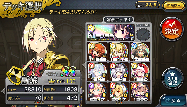 ちなみに富豪は、クリア優先ならジャンヌと聖オルを抜いて、剣ーサーと3コス光アタッカーを入れた方が安定しそうです。